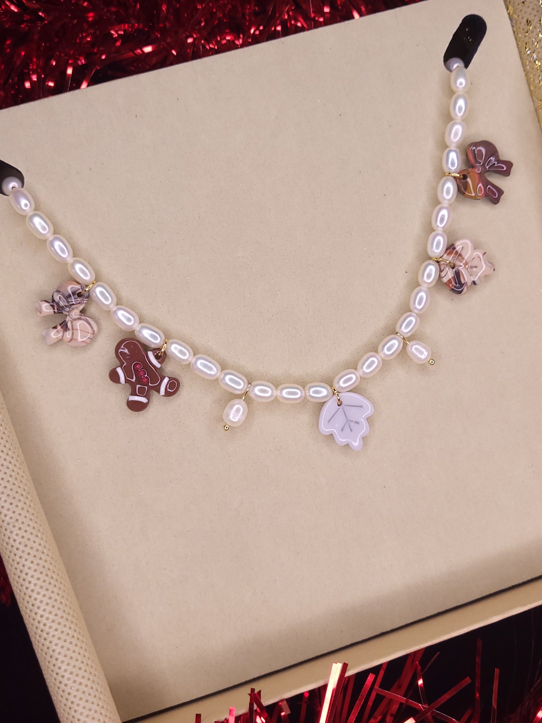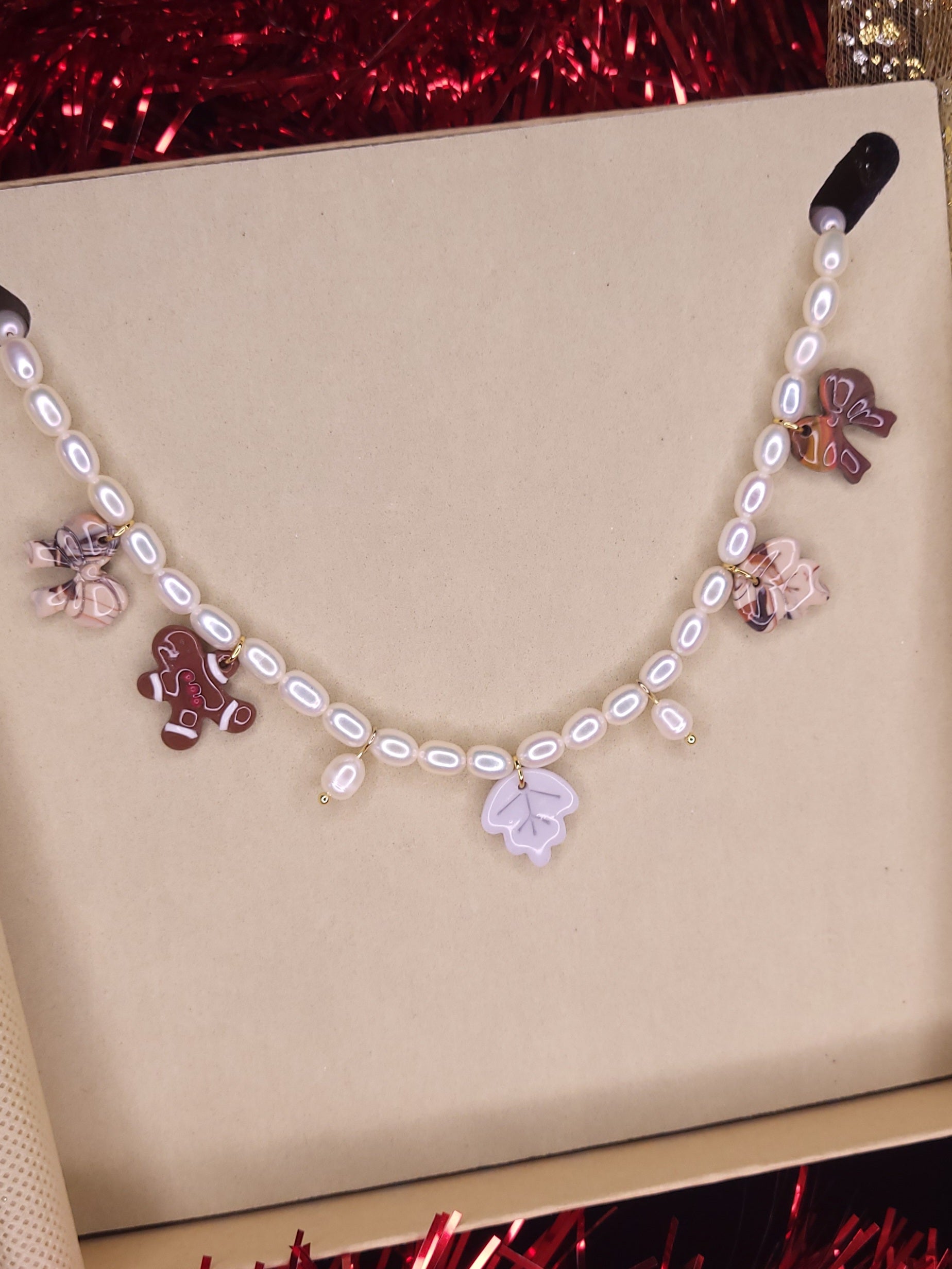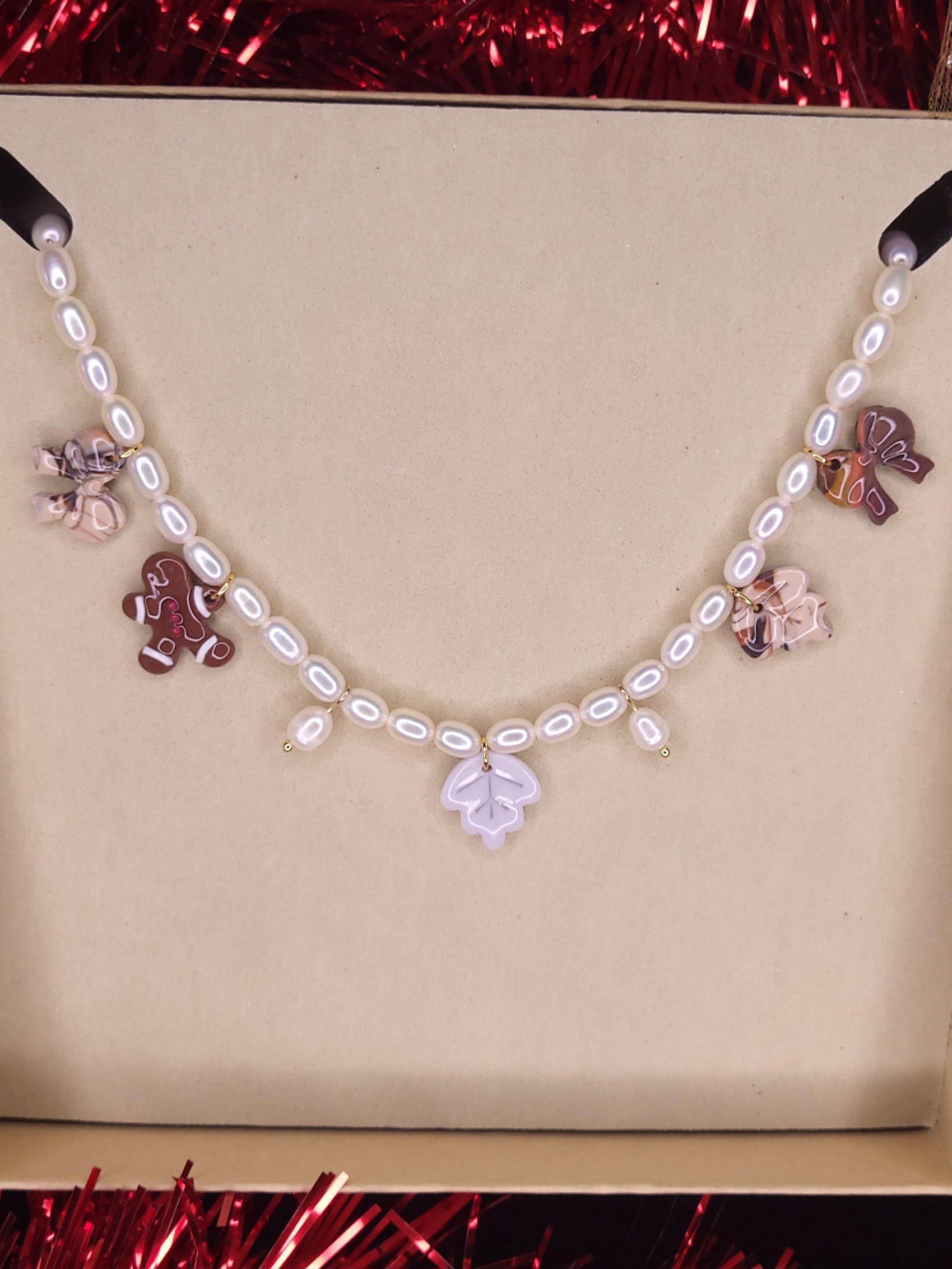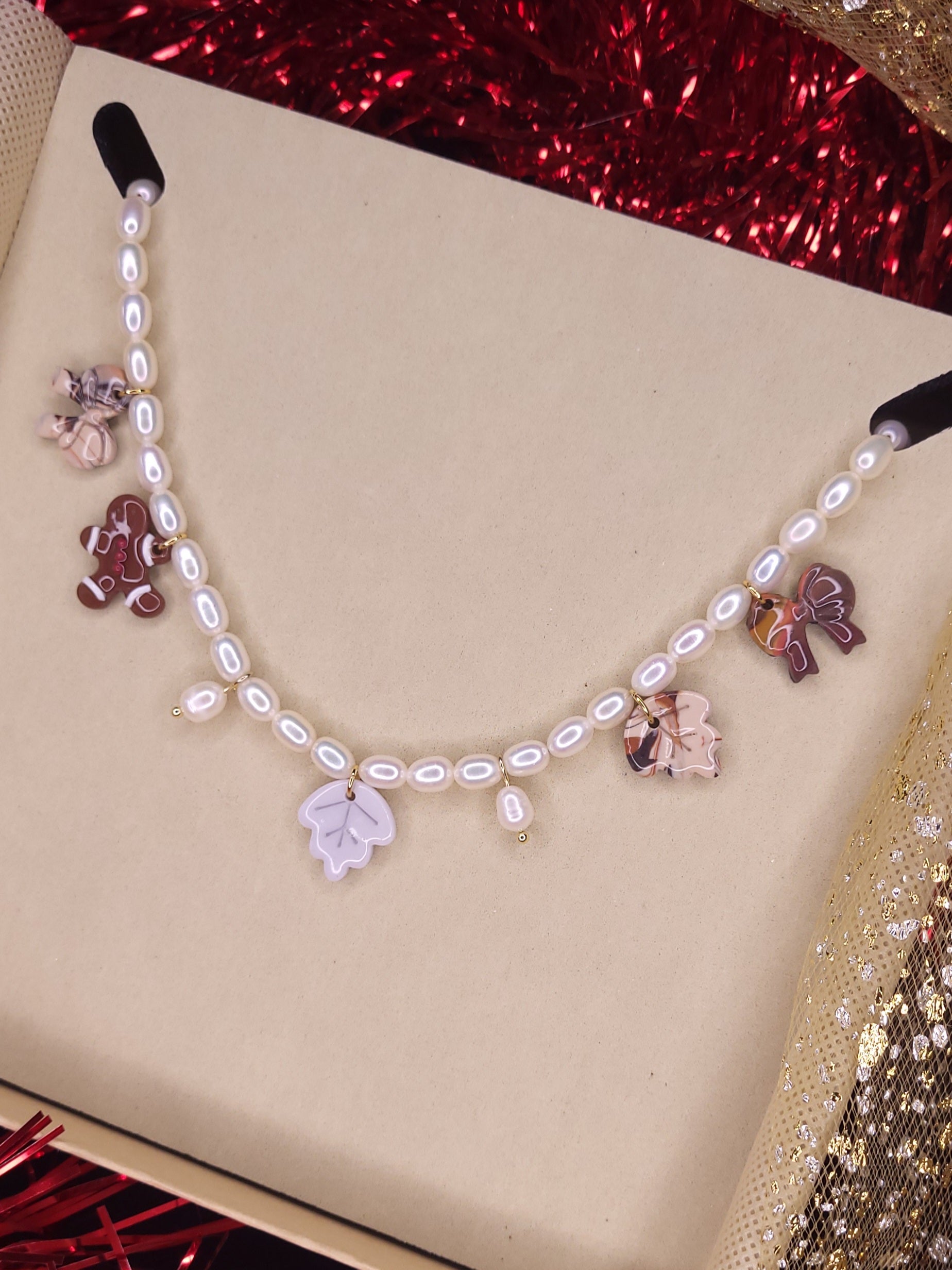 - 🦪 Natural freshwater cultured pearls, stainless steel and polymer clay charms.
