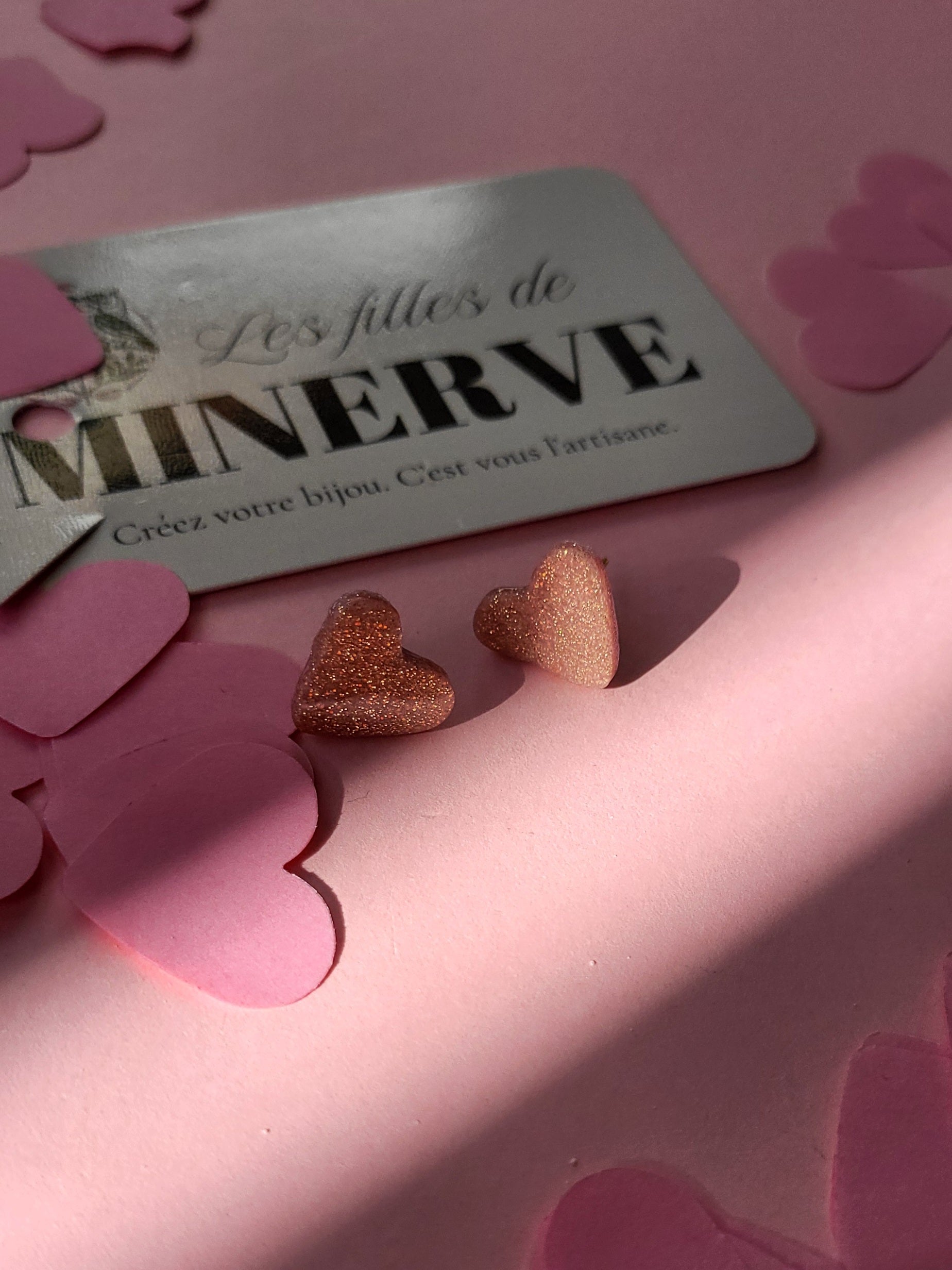 Rosalie - boucles d'oreilles puce rose à paillettes