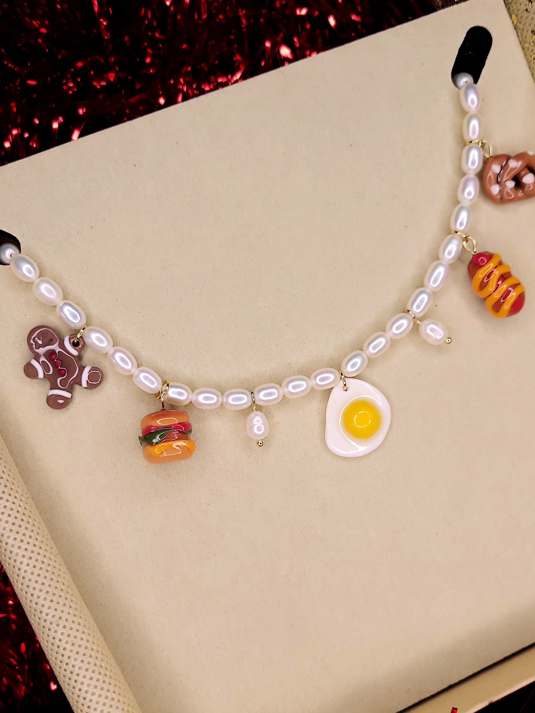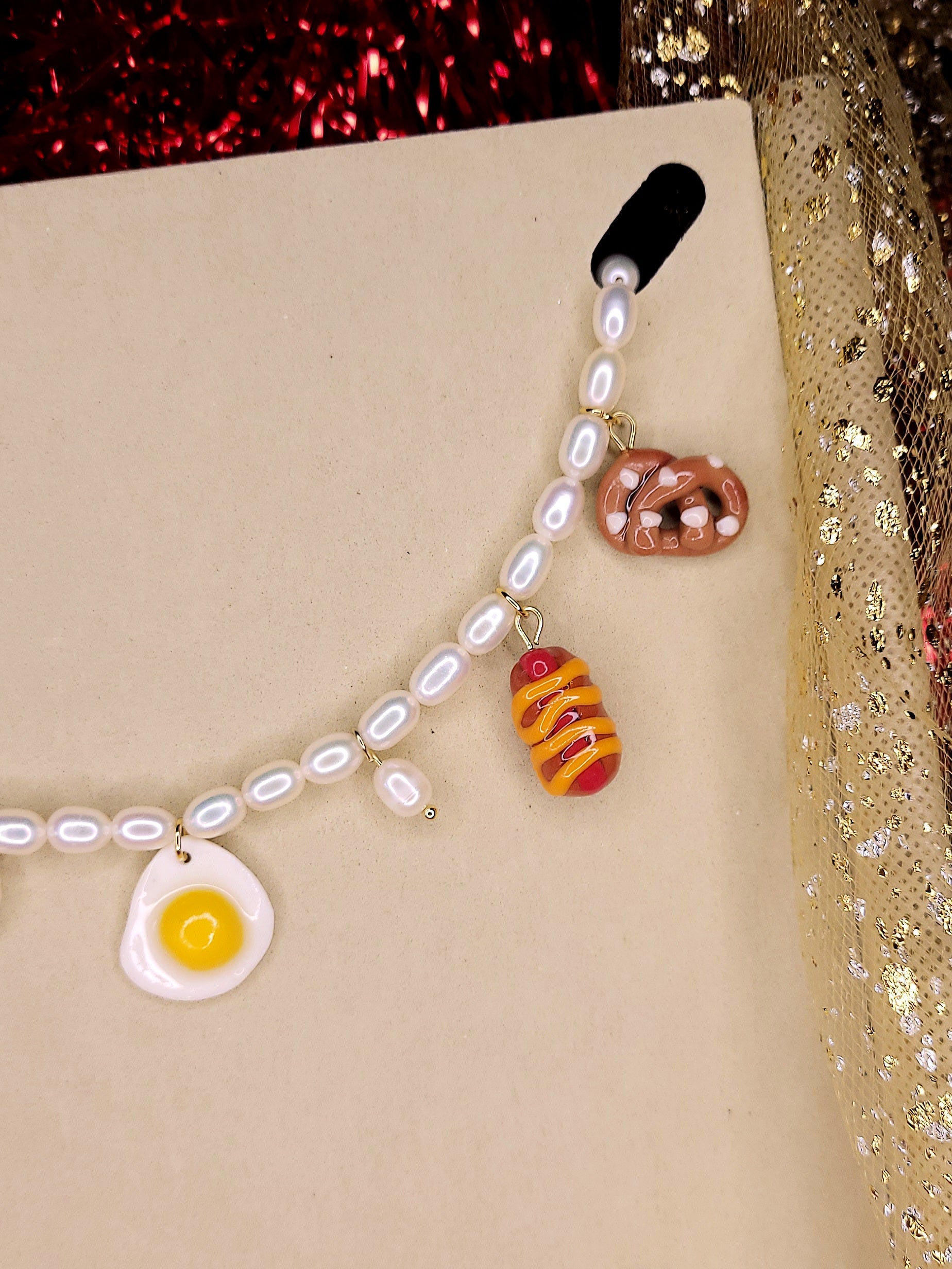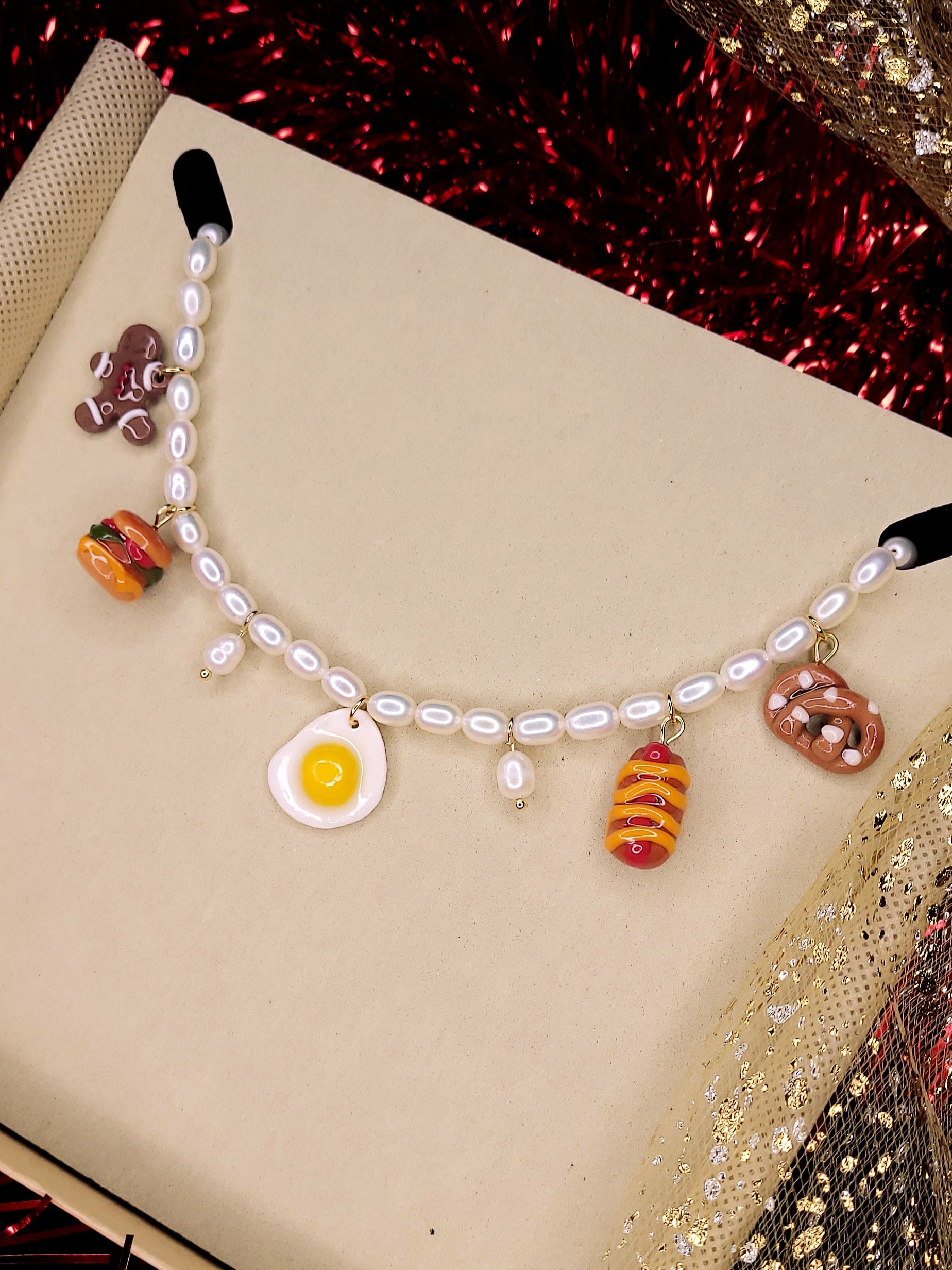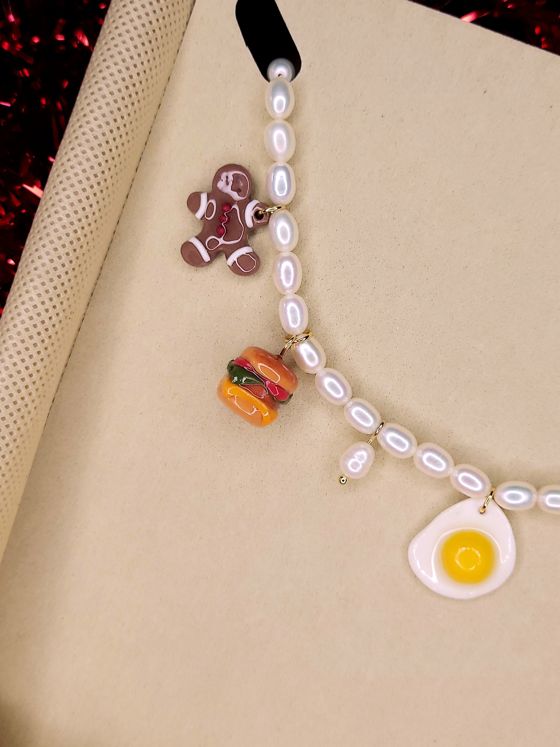- 🦪 Perles de culture d'eau douce naturelles, acier inoxydable et charms en pâte polymère.