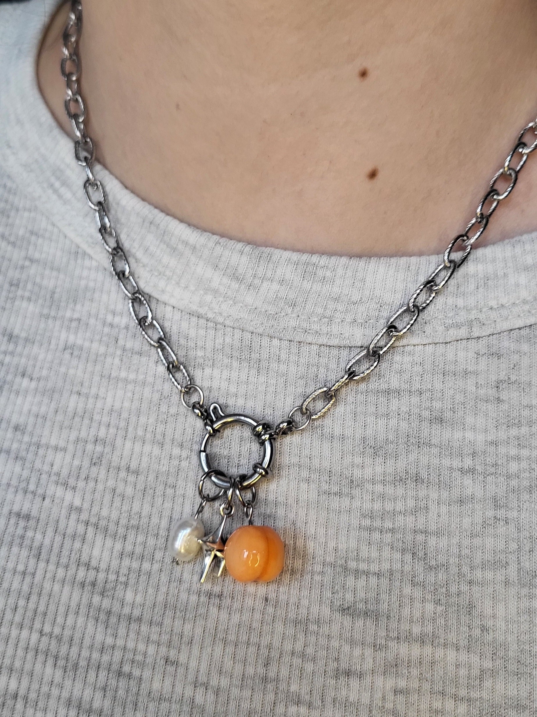 - ⛓️ Acier inoxydable et charms en pâte polymère.