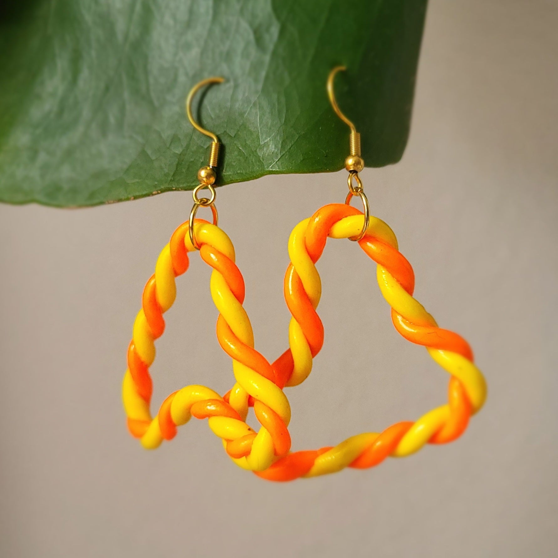 Une paire audacieuse aux teintes jaune et orange fluo, sculptée à la main en pâte polymère. Des boucles éclatantes qui apportent une touche de peps et d’énergie à n’importe quelle tenue.