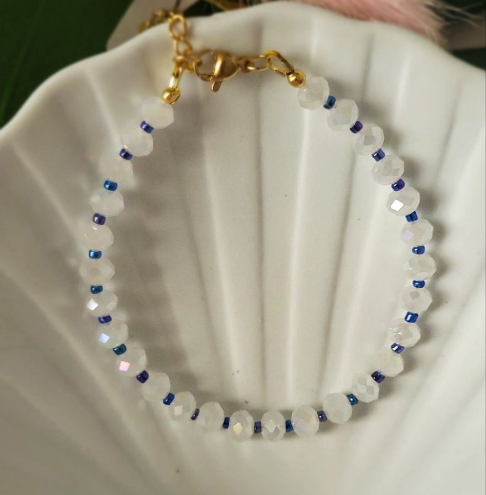Ce bracelet délicat joue sur les nuances et les volumes grâce à l’alternance subtile de perles. Ce jeu d’équilibre entre clarté et intensité en fait un bijou à la fois moderne et intemporel, parfait pour sublimer toutes tes tenues, du quotidien aux occasions spéciales.