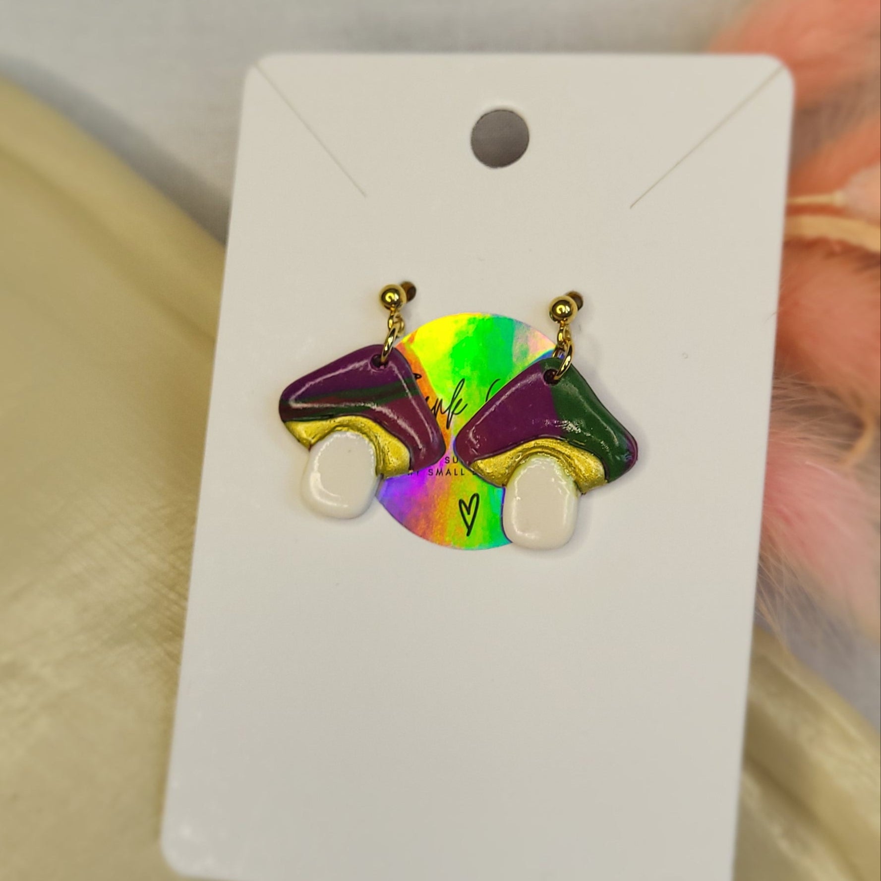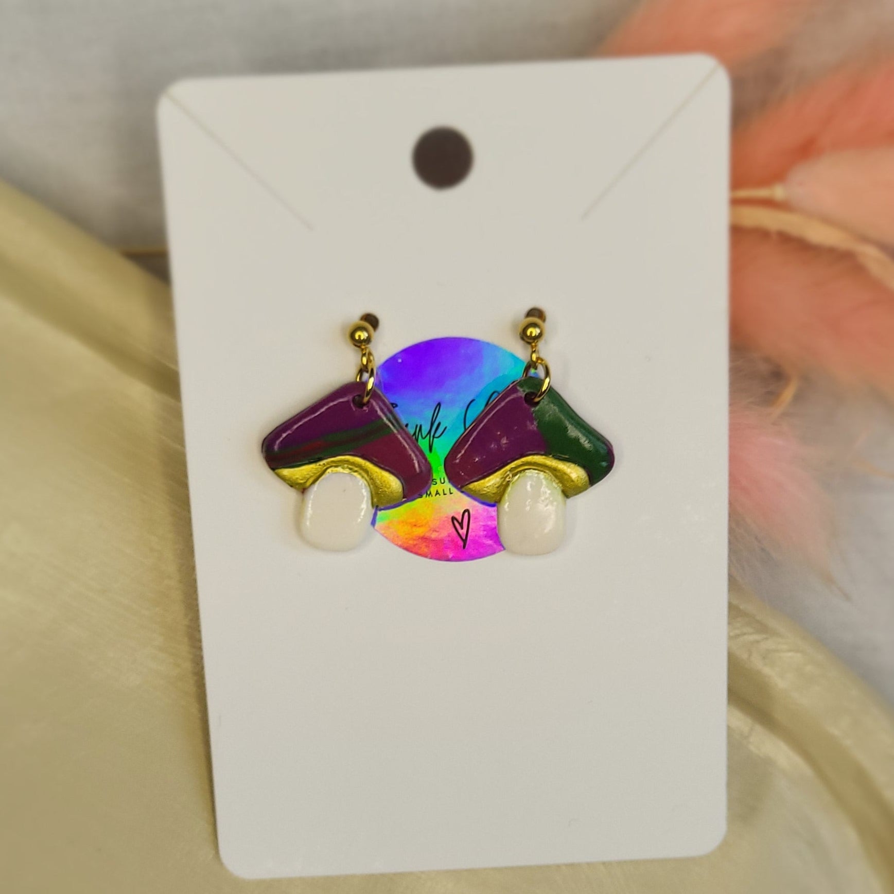 Féeriques et délicates, ces boucles d’oreilles mettent en valeur un pendentif en forme de champignon entièrement façonné à la main en pâte polymère. Leur chapeau mauve parsemé de touches dorées scintille délicatement, tandis que le pied blanc apporte contraste et légèreté. Montées sur un crochet tige en acier inoxydable, elles sont à la fois confortables et résistantes, parfaites pour insuffler une note magique et originale à vos tenues.
