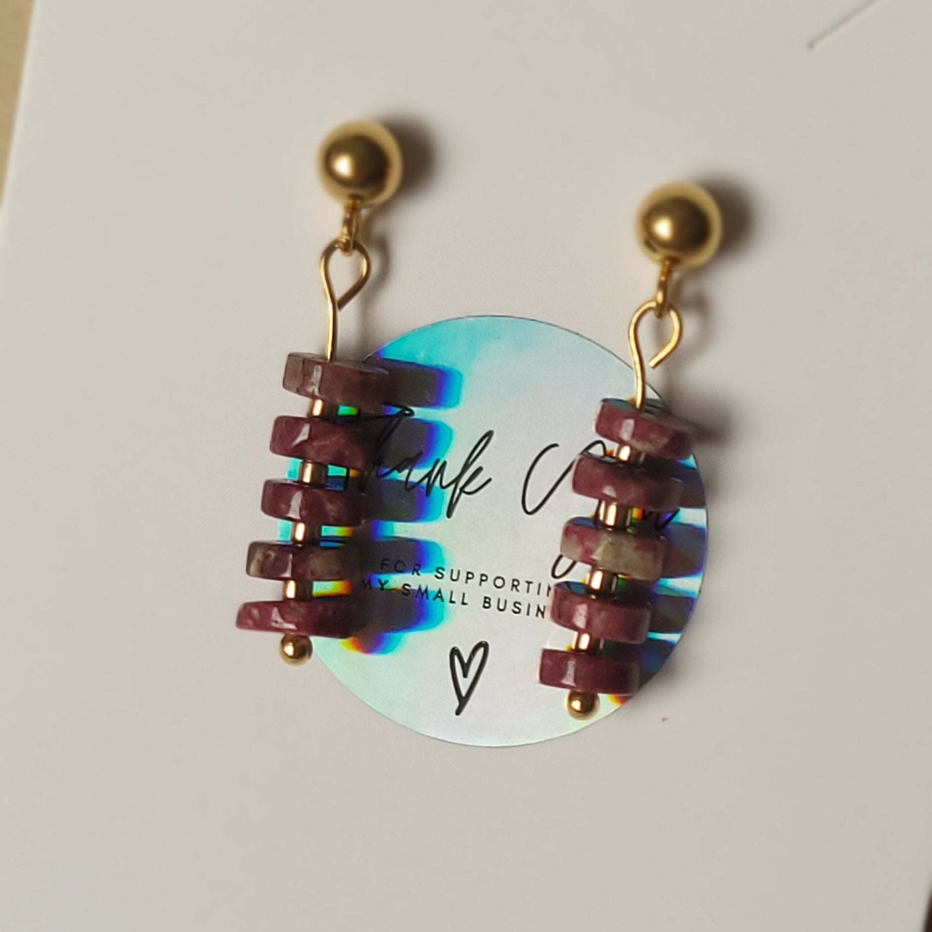 Ces boucles d’oreilles allient la finesse de l’acier inoxydable à la douceur naturelle de la rhodonite. Chaque pendentif en pierre véritable se distingue par ses nuances de rose délicat, parfois marbrées de gris ou de noir, qui rendent chaque paire unique.