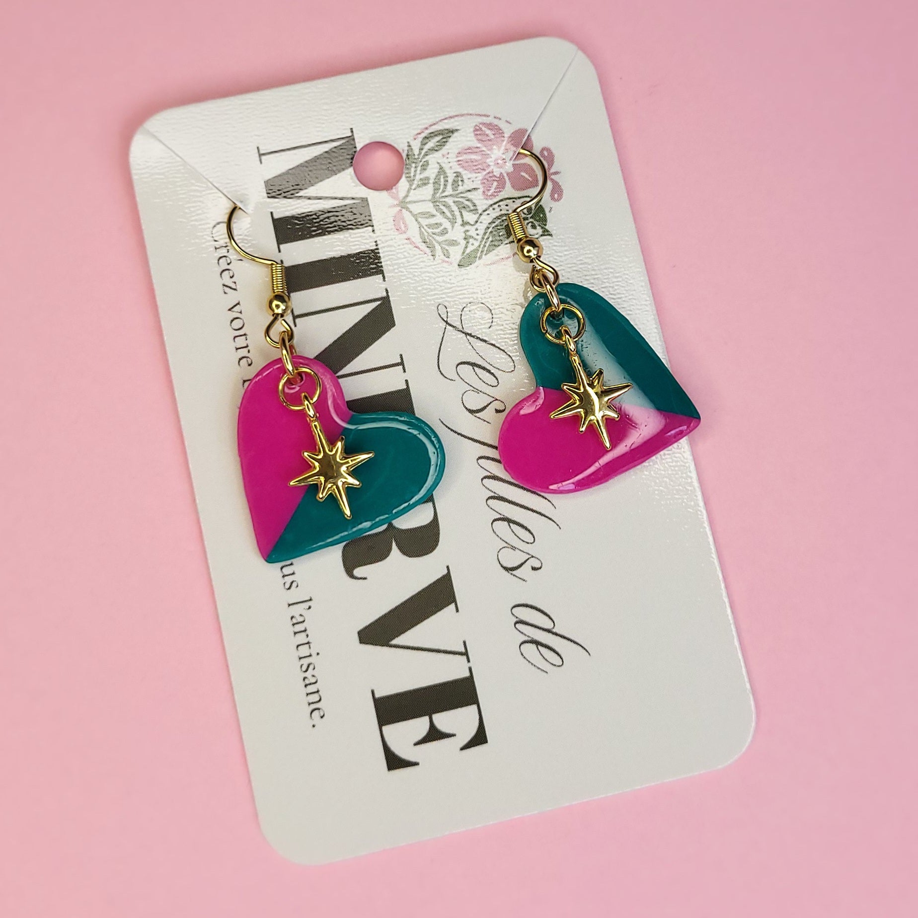 Romane - boucles d'oreilles dorée cœur rose et vert